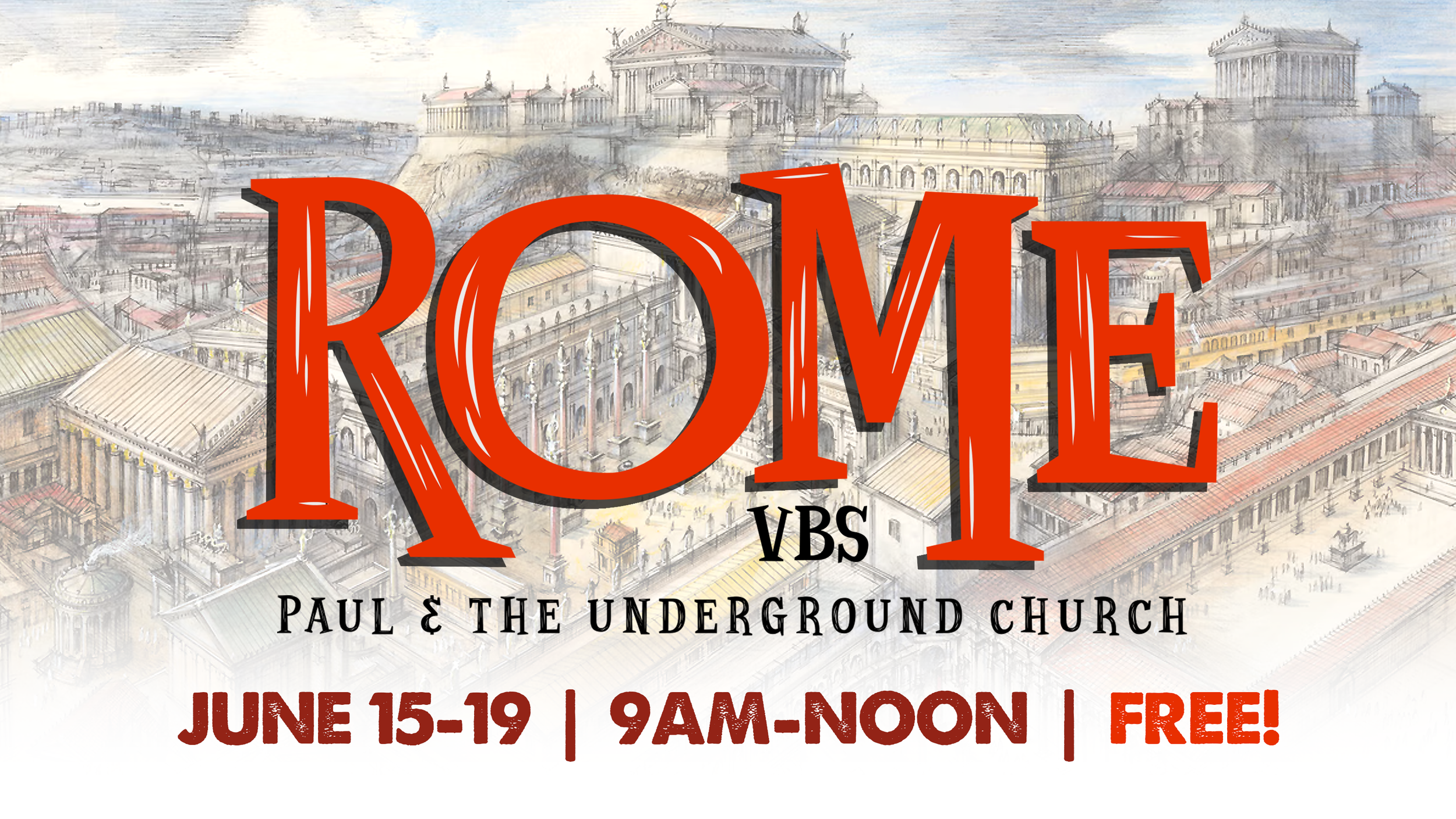 At ROME VBS, kids will explore the world of the Apostle Paul. They’ll experience Paul’s joyous victories and his heartbreaking trials. God’s Word will come alive as “family” groups visit Paul and 1st-centruy Christians living in the underground church. Kids will also learn about God’s amazing love from the book of Romans, create crafts, and enjoy games designed to enhance their experience of Roman culture!